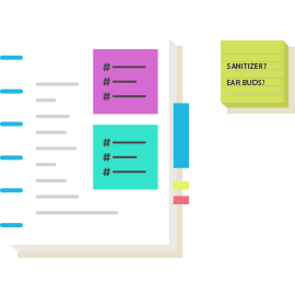 Überraschungen auf ein Minimum reduzieren. Notiere Flugnummern, Abflug- und Anlieferungszeiten sowie andere zugehörige Informationen für jedes Teammitglied auf einer Post-it® Haftnotiz. Erinnere sie auch an Extras, auf die sie nicht verzichten können - wie Desinfektionsspray oder Gehörschutzstöpsel.