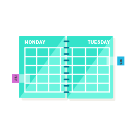 Hebe Deine Ergebnisse hervor. Wähle Deine Post-it® Index Lieblingsfarben, um die Errungenschaften des Tages oder die geleisteten Vorbereitungszeiten im Tagesplaner zu markieren.